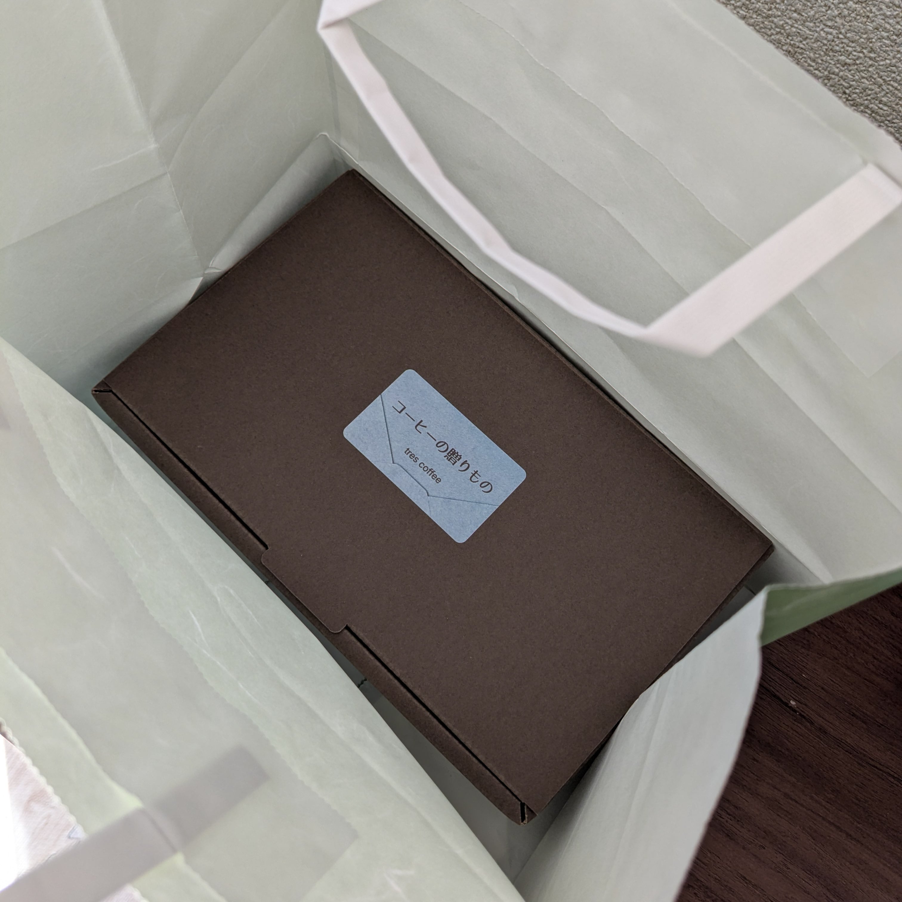 箱を開けると、小さなコーヒーBOXが2つ並ぶシンプルで温かみのあるギフト仕様です。