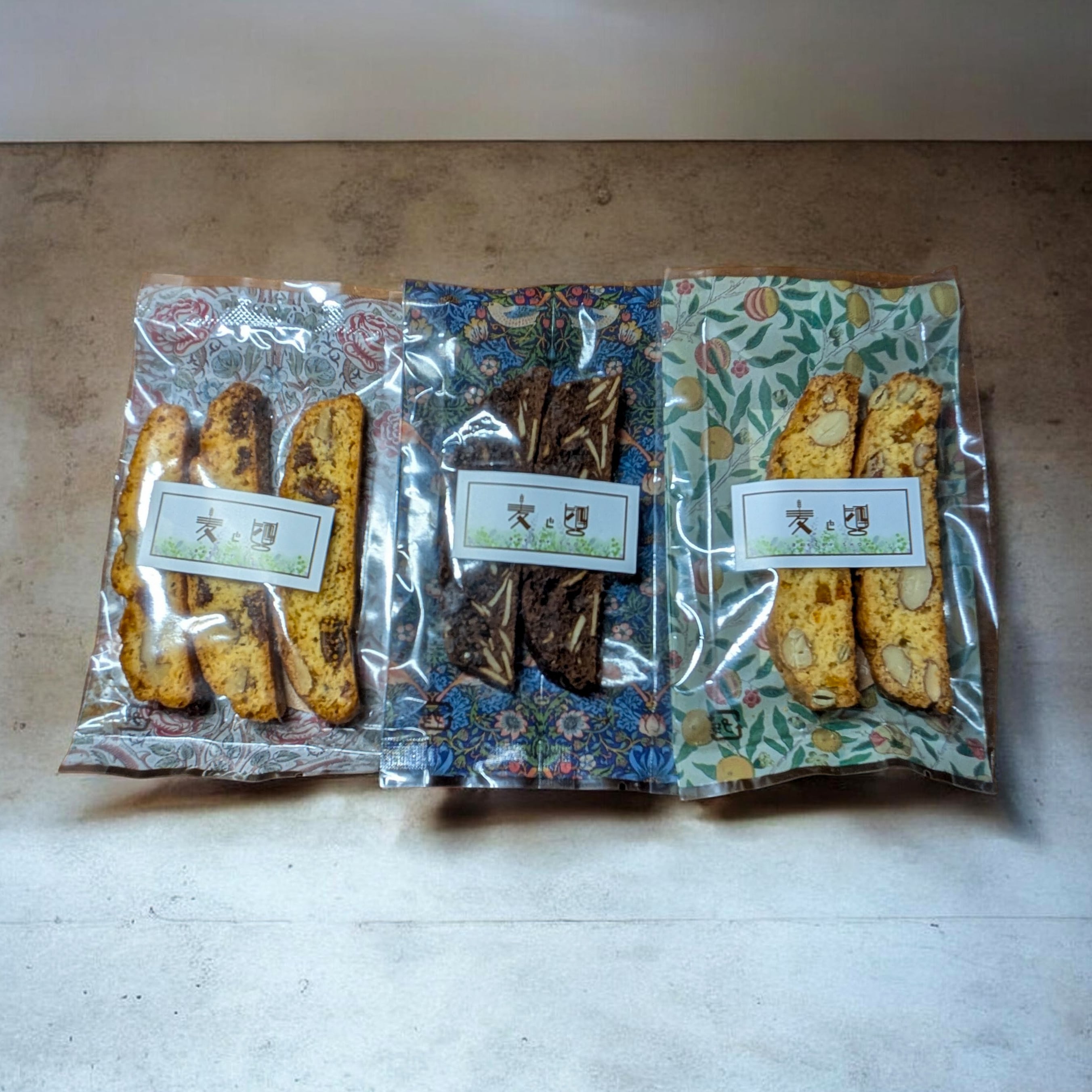 ザクザク食感と素材の味わいがコーヒーとのペアリングにも最適な、BAKERY SHOP 麦と酒 のビスコッティ3種と、